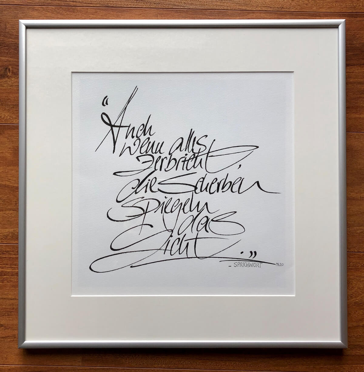 Kalligraphisch porträtierte Sinn-Sprüche bewegen den/die Betrachter(innen) und kommunizieren ihnen, was wirklich wichtig ist. Lassen Sie uns das gemeinsam herausfinden.
